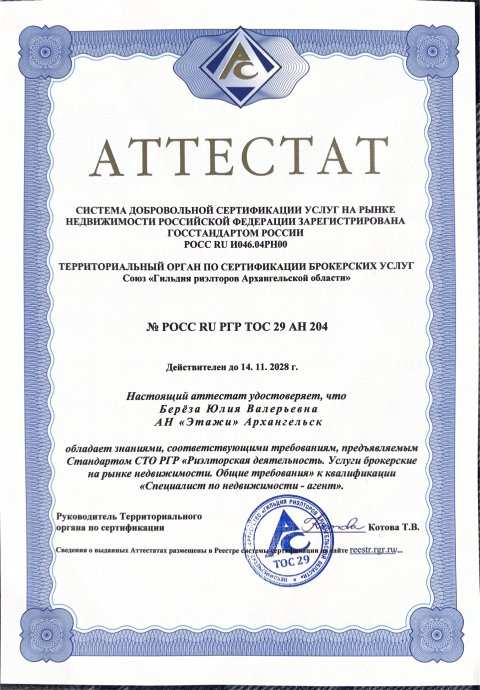Юлия Береза — талантливый и многогранный человек, известный своей активной жизненной позицией и стремлением к самосовершенствованию. Она проявляет интерес к различным сферам, включая искусство и образование, что позволяет ей успешно адаптироваться к изменениям и находить новые возможности для роста. А так же активно развивается в сфере недвижимости. Уделяет внимание каждой детали в процессе покупки и продаже недвижимости. Консультирует по приобретению земельных участков с подрядом. Расскажет, как воспользоваться Арктической и Семейной ипотекой. Юлия активно участвует в проектах, связанных с развитием и обучением, что подчеркивает её стремление к передаче знаний и опыта другим. Её дружелюбие...развернуть